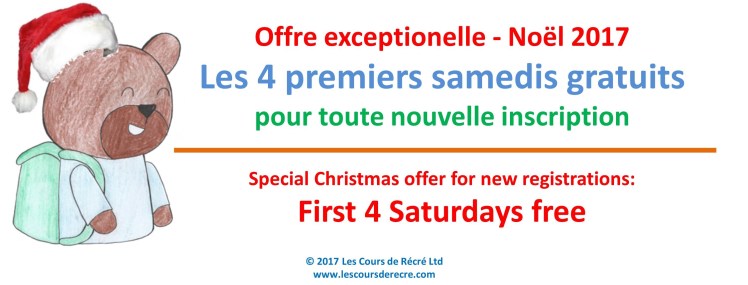 Les Cours de Récré are pleased to offer a special Christmas discount for all new registrations!
