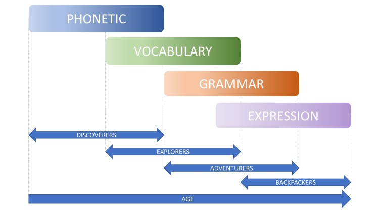 Our approach is divided in 4 major aspects which are taught in the different groups: